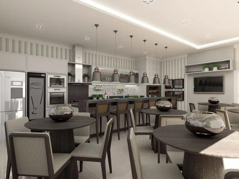 Academia Salão de festas Hall de entrada decorado e mobiliado Medidores de água, luz e gás individuais Brinquedoteca Elevador Piscina